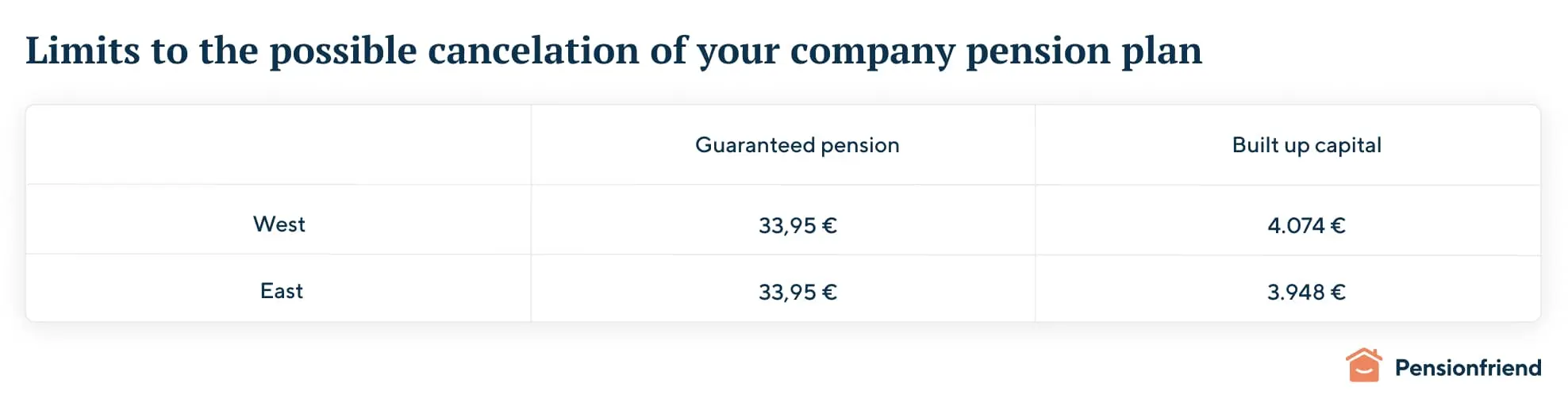 Please note: All of the above applies especially to the so-called “Direktversicherung”, or “direct company pension plans”, where you are individually insured. In addition, there are also so-called Pensionskasse and Pensionsfonds. Furthermore, in these cases, you can seek cancelation or a halt in contributions. However, you should first evaluate whether the assets are well invested. Our standard advice on these kinds of contracts is: If it is invested in guaranteed products or largely in fixed-interest products like bonds, the return is unlikely to be good enough, and cancelation probably makes the most sense. The exception is when you are already close to your retirement (say, over the age of 55-60).